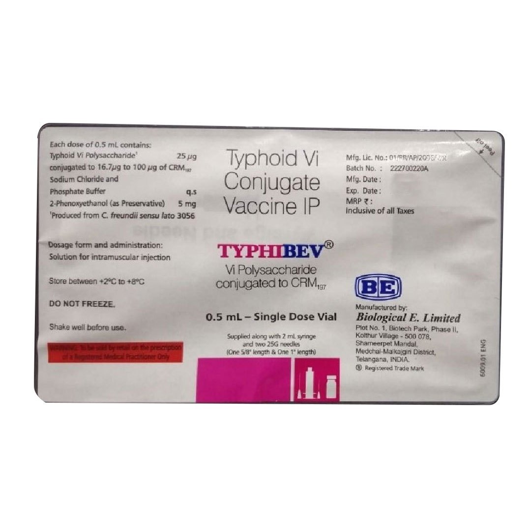 The Typhibev vaccine is used for the prevention of typhoid fever, a serious infection caused by the bacteria Salmonella Typhi. It is recommended for individuals at risk of exposure, including travelers to typhoid-endemic regions, healthcare workers, laboratory workers, and people with intimate exposure to a typhoid carrier.